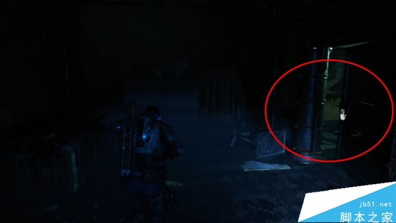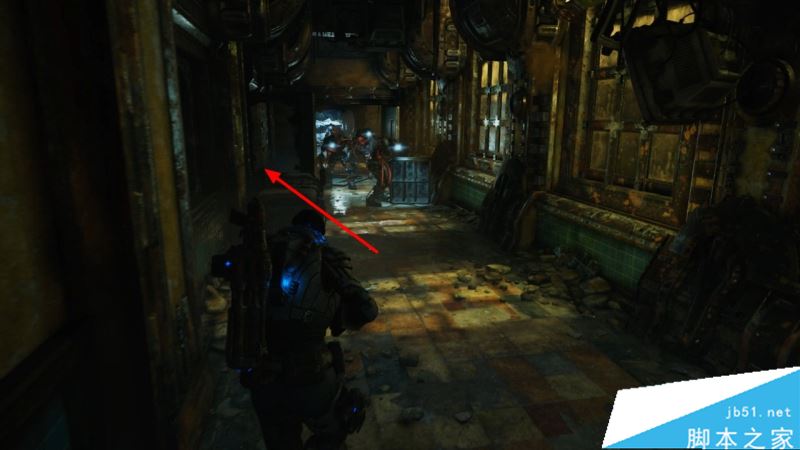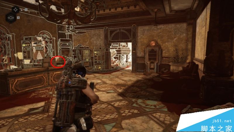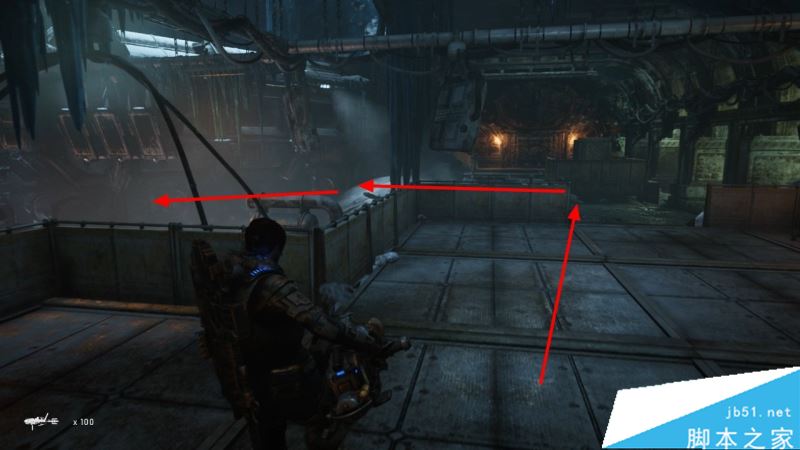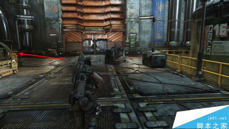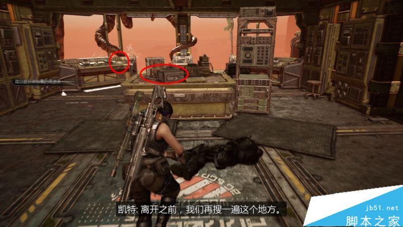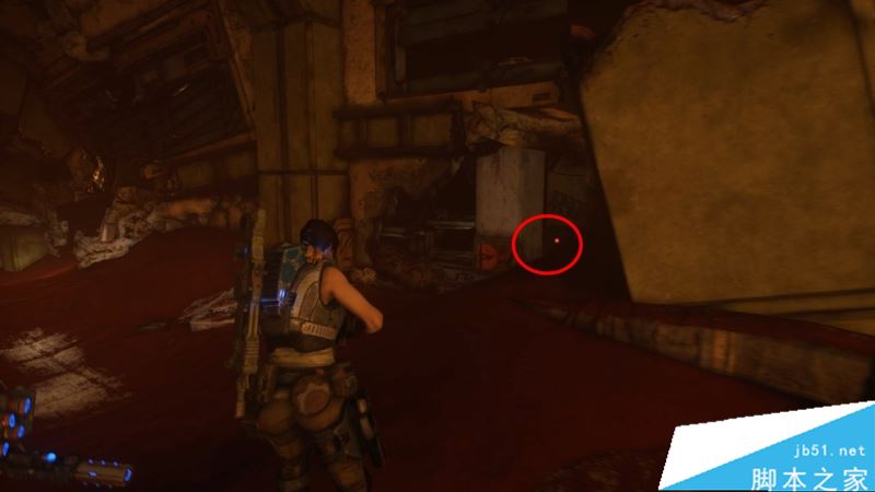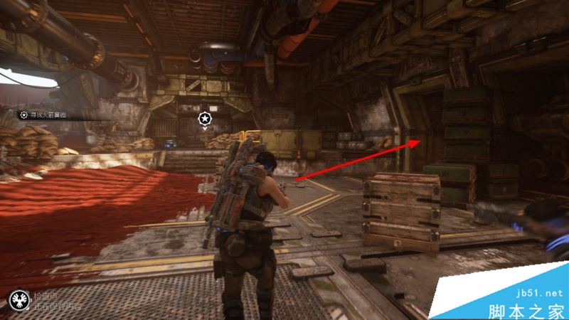 继续前进,在下图位置,右转,里面有一个保险箱,可以获得【组件*5】。拾取后继续前进到下一个场景,一路上会有各种敌人的战斗,只要利用好掩体都能轻松消灭敌人。