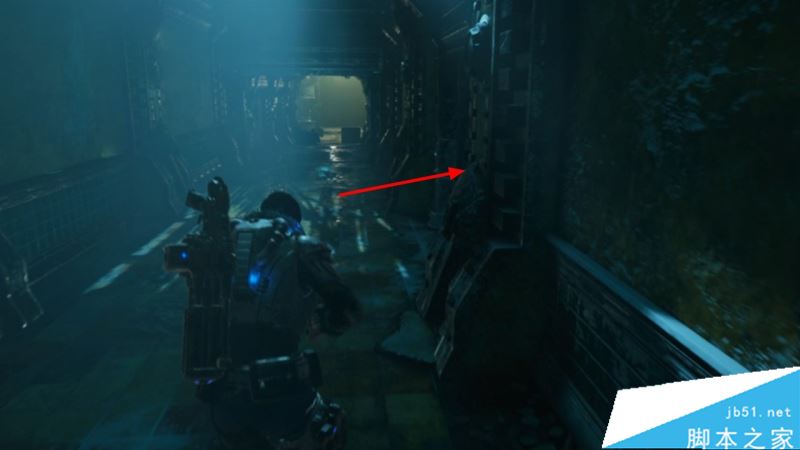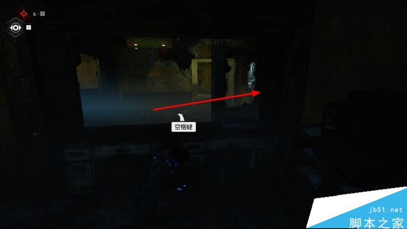 进入内部之后,一直向前走,到了一个昏暗的屋内,里面有一个杰克可以控制的开关,但是杰克不能直接进入,接下来看右边的墙,在比较高的地方有一个洞,让杰克进去。