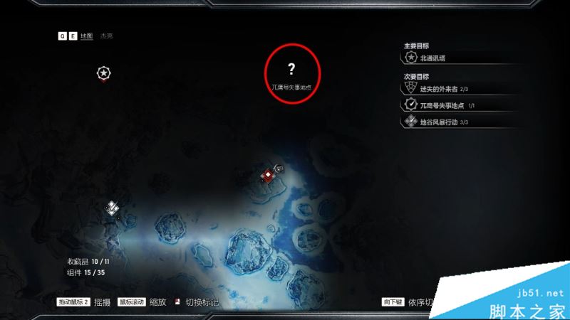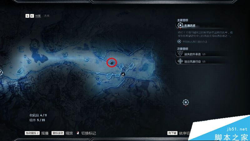 从直升机上下来之后,正式开始游戏。因为之前通过新手训练营我们已经了解了基本操作,首先回头在下图红圈的石头上获得第一个收集品【收藏品:破旧的眼镜】。