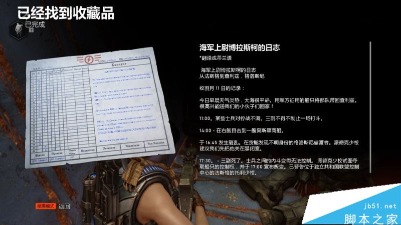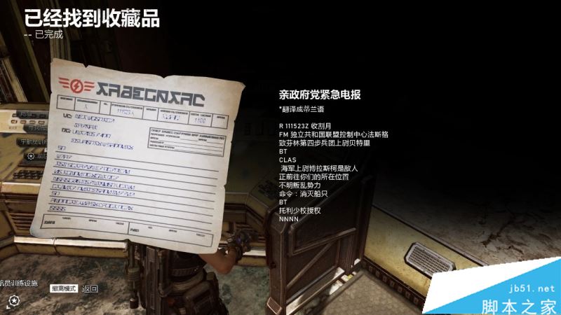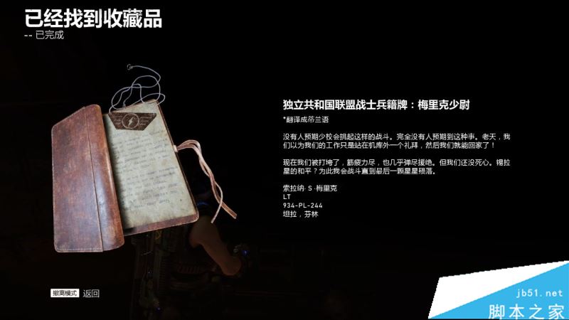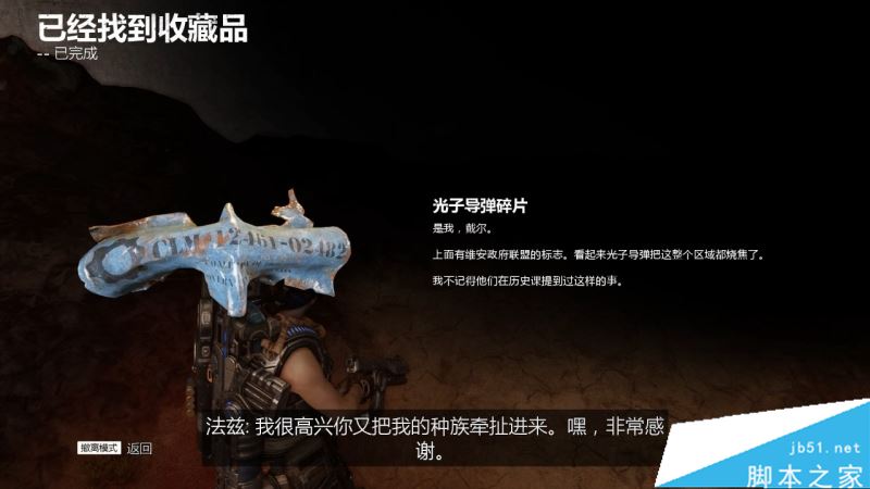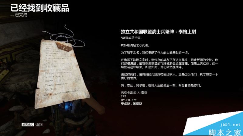 打完之后,和队友集合,向前走,会在地上拾取到【收藏品:泰格上尉兵籍牌】。接着让杰克检查信标后,就可以离开了。
