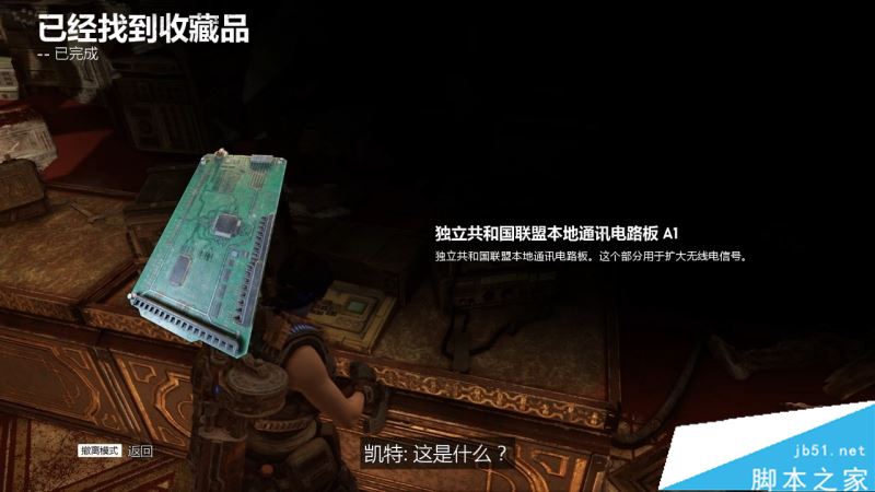 清理完敌人后,进入建筑内,在桌子上获得【收藏品:独立共和国联盟本地通讯电路板A1】。