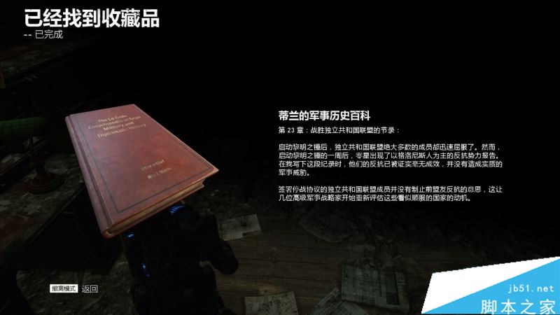 进入房屋内,下第一个楼梯后,会看到一个钢琴,钢琴旁的地上可以拾取【收藏品:蒂兰的军事历史百科】。