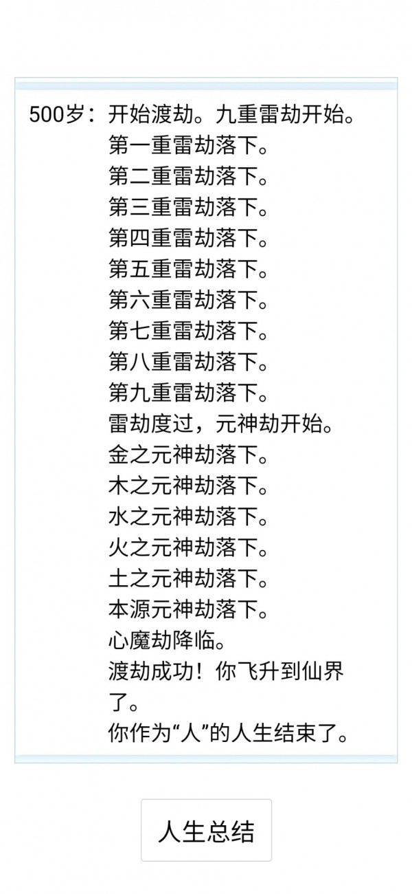 必须把金木水火土所有五行道,空间时间混沌生命毁灭里其中任意一个本源道,悟出来才能渡劫,最后的心魔劫快乐必须大于10才能度过(1%悟出五行之一,0.1%悟出本源之一)