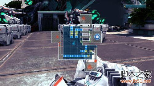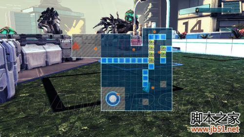 进入战斗平台(蓝色光圈范围示意可以摆放塔防道具,一定要留有一条通道让敌人内进到核心),到核心附近捡取圆台和炮塔,按“回车键”开启该波攻势。