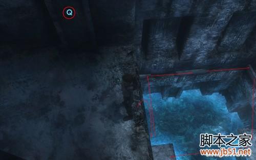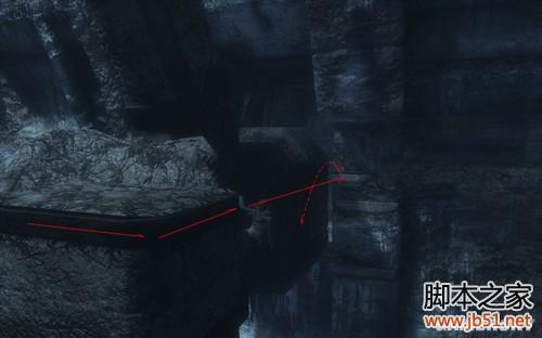 站在洞穴 内部的边缘,可以看到头上有个吊环,利用吊环下到底部,荡至可抓边缘,然后按照图示出去