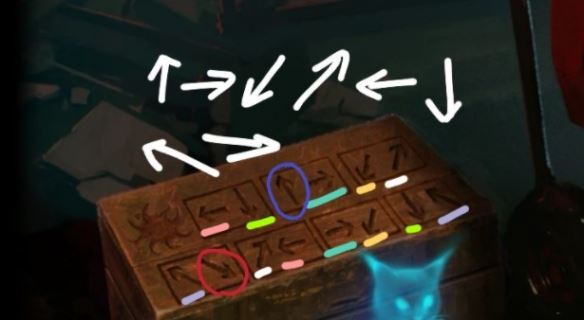 1.要切换到女主视角,在猫猫守着的盒子盖上,可以看到太阳图案,以及一些箭头。