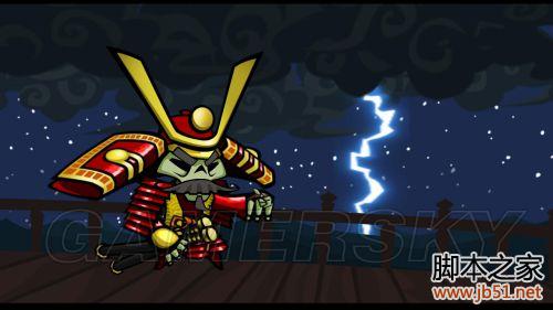 赤本将军一刀就把蓝盔甲士兵的头骨给砍了下来,这时,上方不远处有两个浪人看见了事发经过,他们都表示非常欣赏赤本将军的作风,而且估计他们都是赤本将军的忠实粉丝,所以他俩义不容辞地成为了赤本将军到达阴曹地府后最先手下的两名打手(一步兵,一骑兵)。