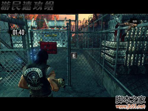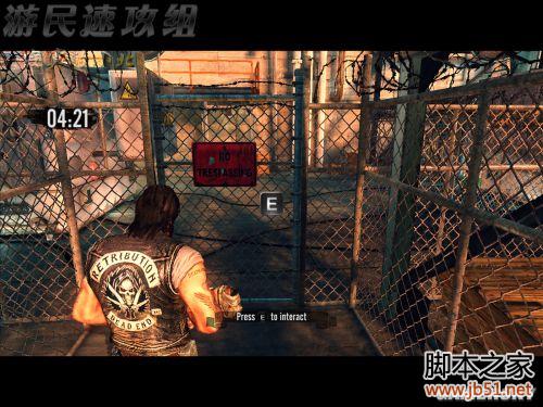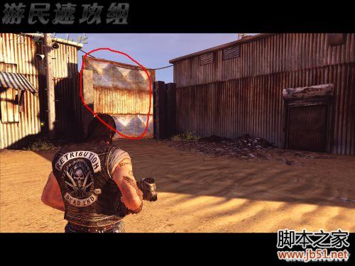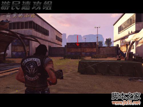 - 一开始Jake出现在了一个城市的马路上,我们第一步是要找到上图所标示的铁门并靠近按e键将其踢开2013-06-29