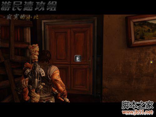 虽然门没有被踢开,但踢门的动静惊动了屋内的敌人,其中有一个敌人会打开左边的侧门出来查看情况,我们可以乘机从侧门进到屋子里。