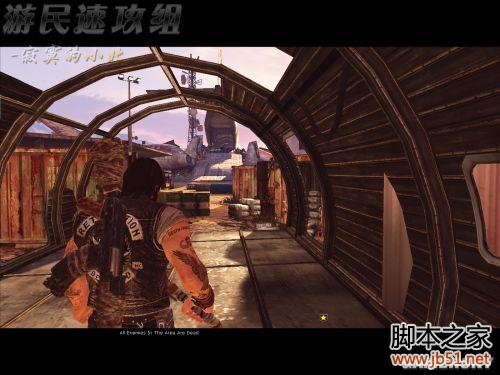 一开始我们要去到对面的加油站,那里有一群敌人,把他们都干掉后进入剧情——Jake开走了加油站的油罐车。