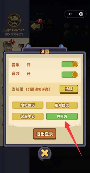3、最后在设置页面可以找到下图的兑换码按钮,点击进入。
