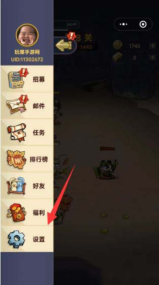 2、在游戏左侧弹窗中,找到其中的齿轮设置按钮,点击进入设置页面。
