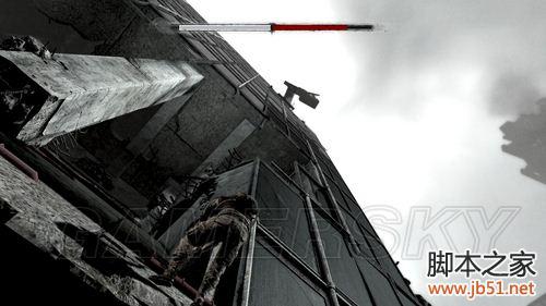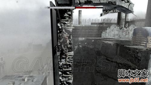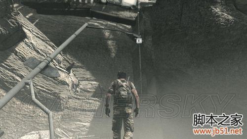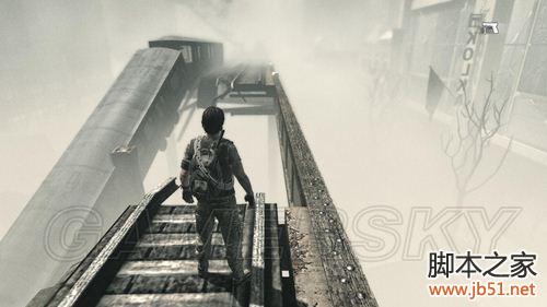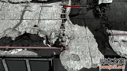 这里要向上爬,顺着轻轨铁道向目标建筑物前进。