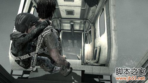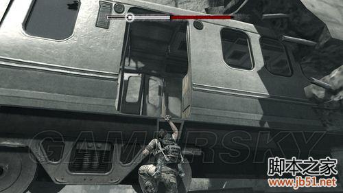 利用右侧的岩壁再次大跳来到车厢。