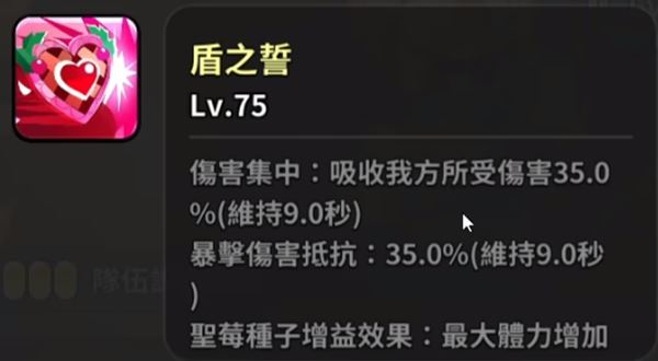 圣莓果的技能有一个持续9秒的伤害吸收,在竞技场上能抗住敌方伤害,用冷却配料能持续无敌。