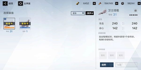 6、最后一个提高战力的方法是武器,武器只会增加角色攻击和会心两种属性,但武器拥有特定技能,运用得到将改变战场形势。除此之外,玩家也可选择吞噬同星级武器来解锁共鸣技能,武器可通过研发系统获得。