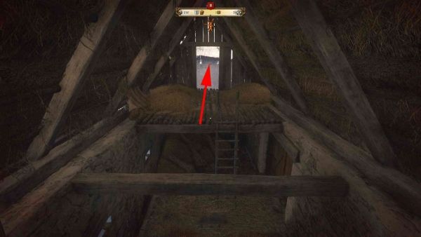 首先我们需要进入裁缝铺后面的谷仓中,接着使用梯子爬上去。
