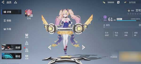 艾可,电系的核心辅助之一。技能特点在于群体加速度,加范围奶加暴击率,爆伤攻击群体攻击,而且还有概率封锁奥义等等。几乎涵盖了辅助该有的所有功能,无论是增加伤害也好,亦或者是保护队友也罢,都是非常好用的一个电系辅助角色。特别是增加速度和禁止奥义的效果,在PVP环境下,也有着非常不错的发挥。