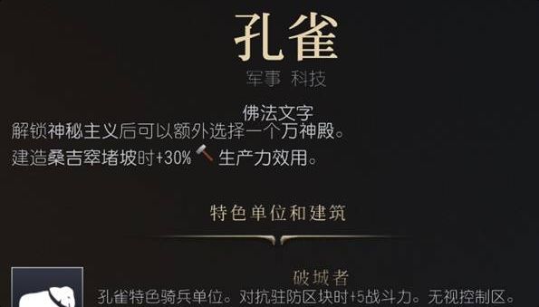 孔雀特色开拓者,能建立新城镇的平民单位,市政厅+2幸福值。
