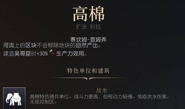 高棉特色骑兵单位,战斗力更高,但移动力较慢,免疫洪水伤害。无视控制区。