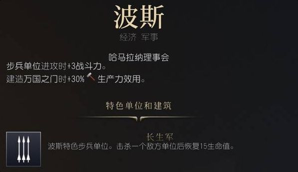 +1文化值和金币,波斯特色改良设施,无时代限制。