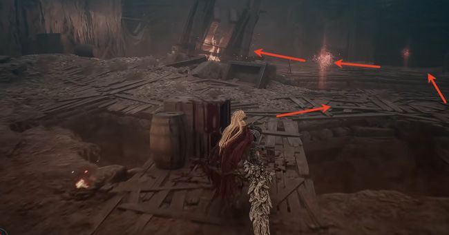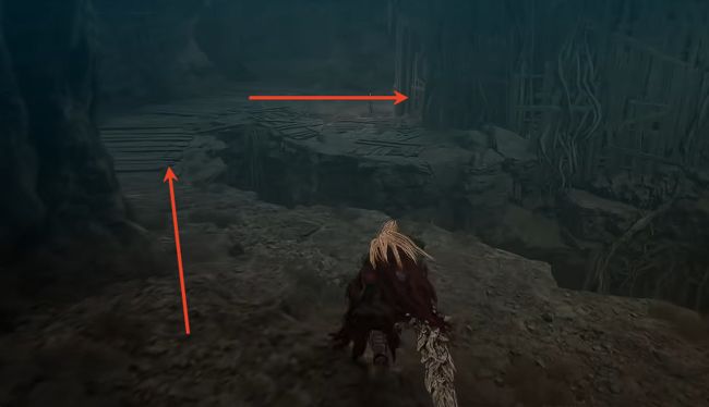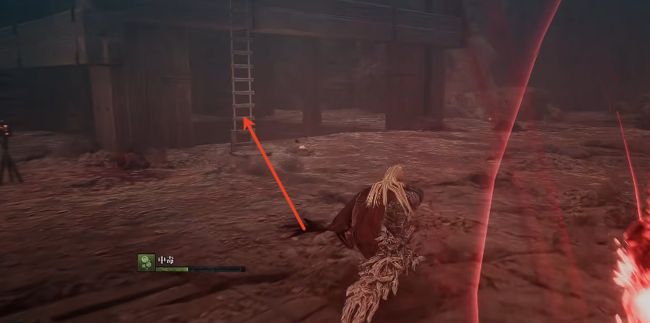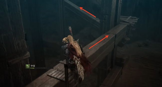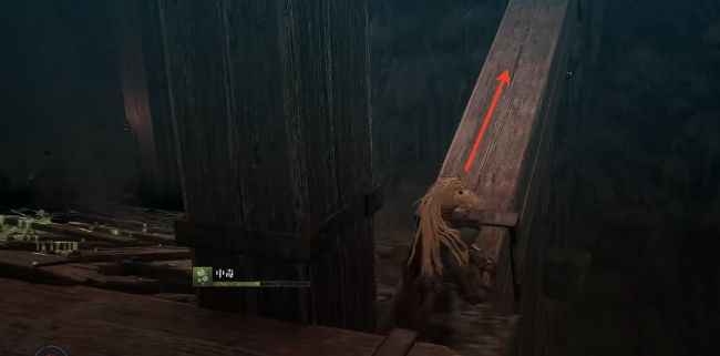 5、击败之后,继续顺着木板往上走。