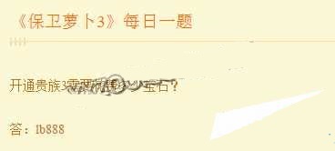 保卫萝卜3中,开贵族3需要花费多少宝石?很多玩家都想知道,下面小编就带来2月14日每日一题,大家快来看看吧... 17-02-14
