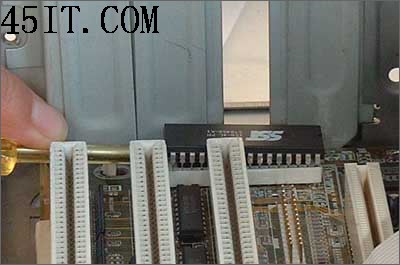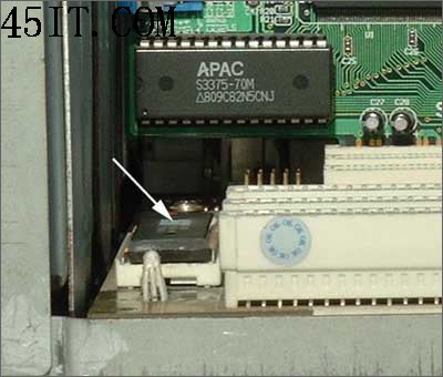这里顺便提一下,在通常情况下,取下BIOS芯片需要芯片起拔器。对于采用DIP封装的BIOS芯片,采用起拔器还显得不是很重要,但是采用PLCC封装的BIOS芯片,如果不使用起拔器,是很难取下的。起拔器一般在电子市场可以买到。对于没有起拔器的情况,我们可以采用修眼镜和钟表的那种小改锥来代替,笔者一直使用这种方法,只要你在起拔的时候认真小心,还是很安全的。对于使用DIP封装的BIOS芯片,起拔的时候要先将改锥一侧撬起少许,然后再撬另外一边,反复重复这个过程,直到芯片完全取出。对于采用PLCC封装的BIOS,需要使用改锥从芯片对角线的凹槽起拔,并且要加倍小心,因为PLCC封装比DIP封装更容易损坏。