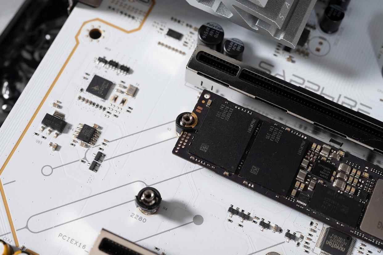 为了方便玩家拆装硬盘,蓝宝石也在每个槽位处安排了M.2固态硬盘的快拆设计。不过要是表面的散热装甲也能安排快拆设计那就更好了。