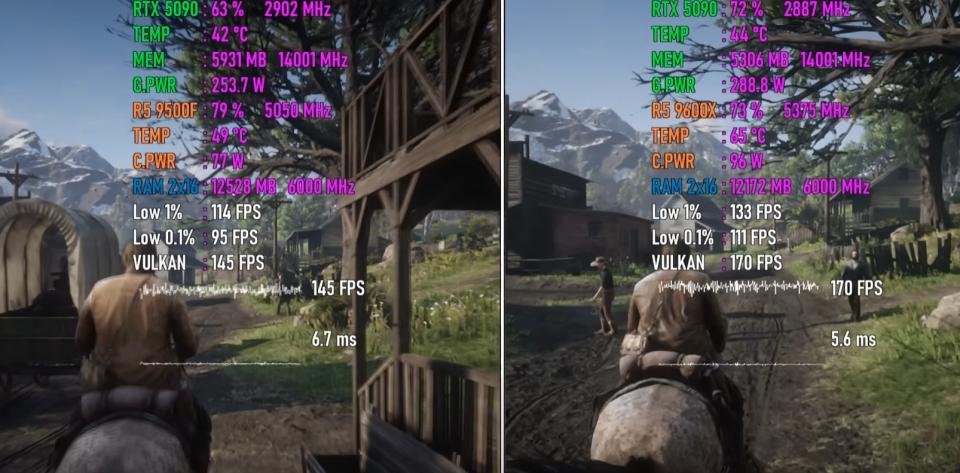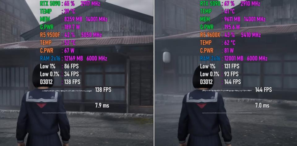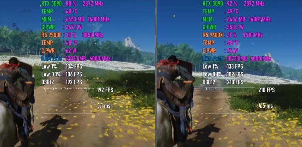 Ryzen 5 9500F和Ryzen 5 9600X处理器性能差距有多大? 七款游戏对比测评