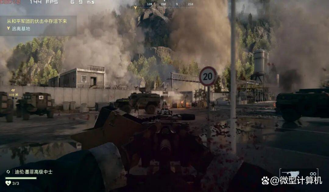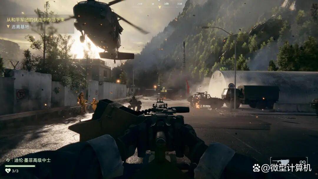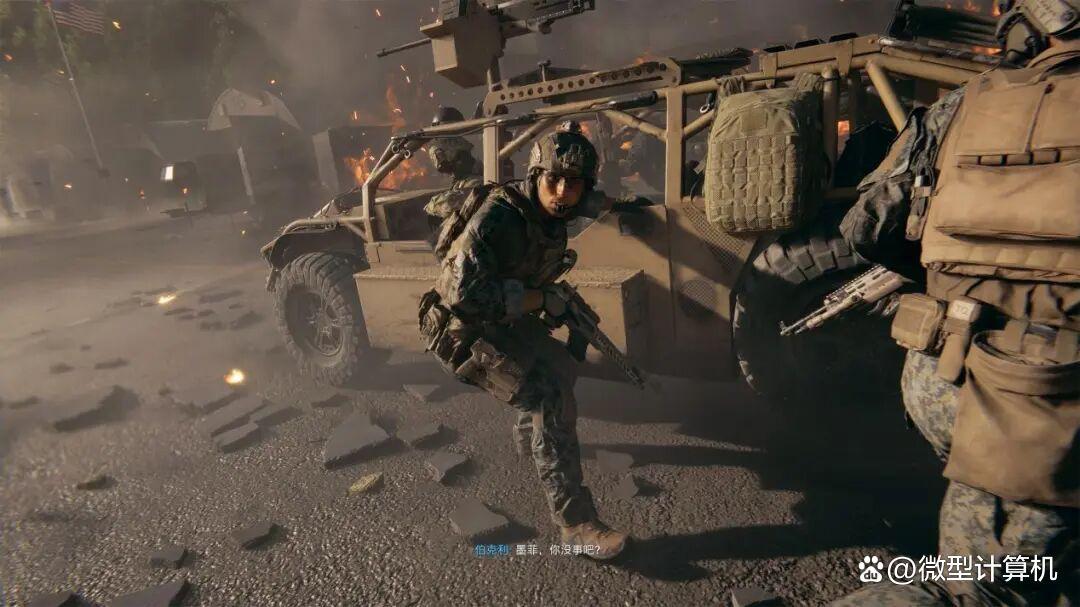 ▲我们载入《战地6》的“忠诚永存”任务,通过驾驶悍马越野车攻击来袭敌军的固定线路进行测试。