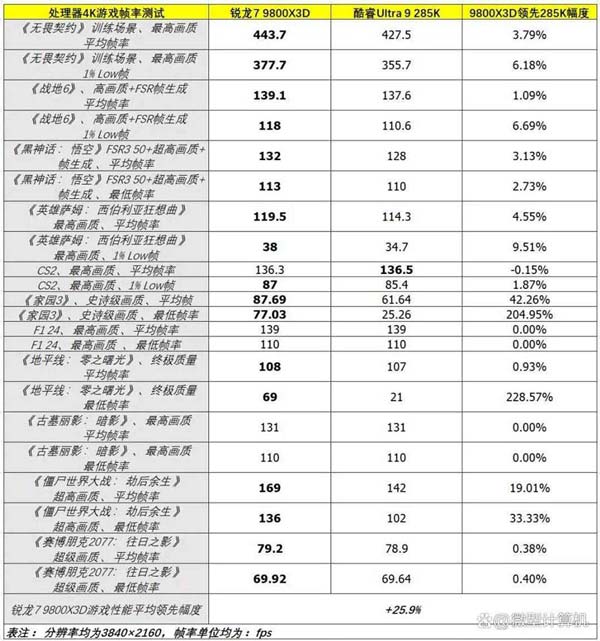 游戏神U无可撼动! 锐龙7 9800X3D依旧完胜酷睿Ultra 9 285K