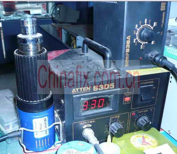 工具:8305 温度:330 风力:3 首先把板放在烤箱上。等板有点烫了。再用8305在上面加热 我的烤箱温度只有87度。我是一直开着。它只能升到这么高了。呵,上面加热可能有4-5分钟。可以用工具或手动一下看能不能取下座子。等取下座子后
