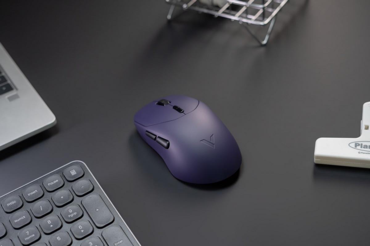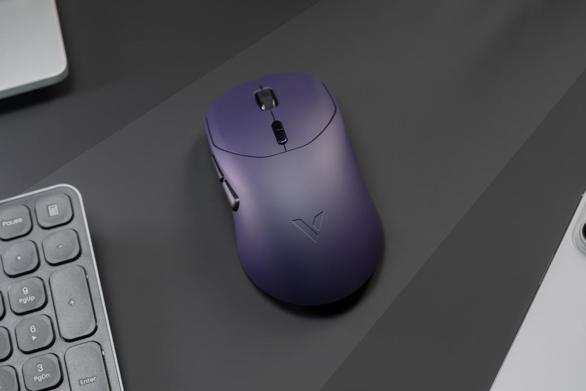 雷柏VT9/VT9 MAX二代(以下简称VT9,单型号简称VT9标准版/VT9 MAX)拥有三款配色。除了经典的黑白配色,还加入了高雅的“电驭紫”,让桌搭配色更添活力。其中VT9标准版采用类肤磨砂工艺,在高强度使用时,手感干爽、不易起汗。而VT9 MAX采用亲肤防滑涂层,在使用时更防滑吸附。体验下来尽管是同一模具产品,但有防滑涂层的VT9 MAX更加跟手,在打游戏的时候,可以让你拥有驱雷策电般的确认感。当然如果追求性价比选VT9标准版也不必焦虑,VT9附赠了官方防滑贴,贴上之后防滑性能会得到进一步加强。