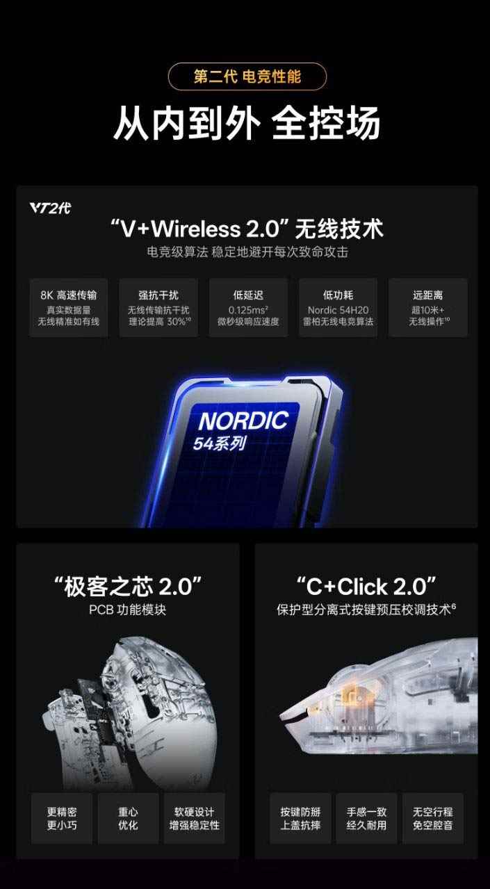 全球首搭NORDIC 54芯片! 雷柏VT7二代电竞鼠标发布