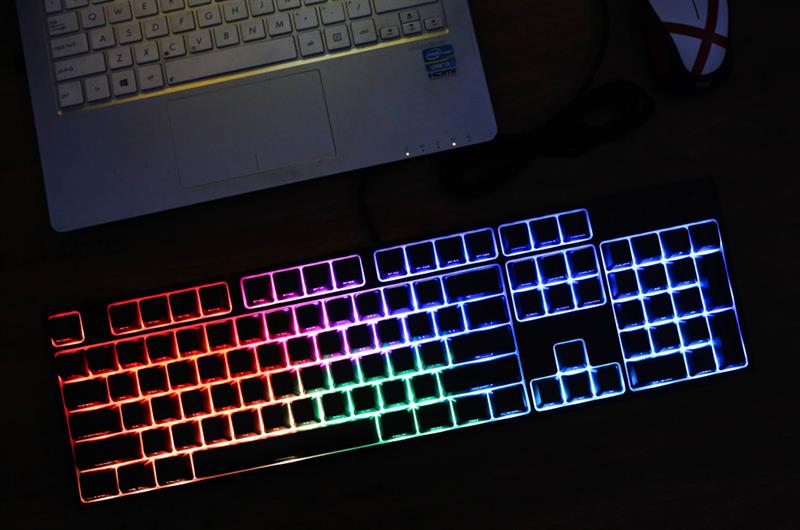 例如呼吸灯效、单点灯效、波浪灯效和涟漪等,作为一款RGB键盘,酷冷至尊CK372 RGB 侧刻机械键盘所散发的“灯”很均匀,而且从侧刻字体呈现出来更有逼格,夜间非常酷炫。