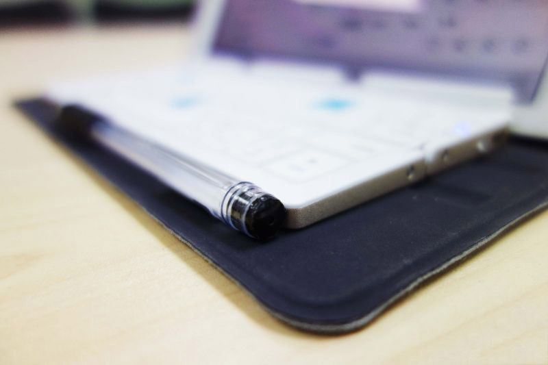 B.O.W 航世 HB199 折叠蓝牙键盘有多薄?下面这张图让你领略科技的魅力。键盘的整体厚度不到一根中性笔的一半高度。