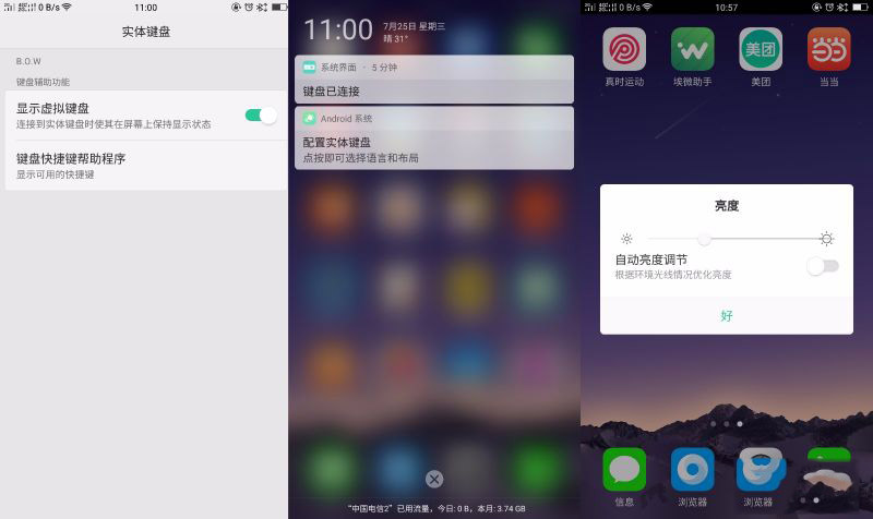 B.O.W 航世 HB199 折叠蓝牙键盘的连接速度其实很考验一款键盘的蓝牙连接性能。我们会发现日常生活中有的垫子设备的蓝牙连接速度很快,有的蓝牙别说连接了,就是搜索起来也是很困难的。航世HB199蓝牙键盘,笔者初次是使用手机连接的,打开蓝牙不到五秒,开启搜索,立刻就能搜到“B.O.W”的蓝牙设备,点击链接即可轻松连接。HB199的多功能键盘有多强大,你们感受一下,手机上的屏幕亮度也可以设用蓝牙键盘来调节。