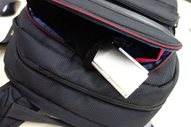 文章题目中的便携在哪里能够体现?笔者绝不是标题党,更不是大放厥词,我们看下图。笔者的双肩背包最外侧的上边小包,主要用来收纳零碎小物件,航世HB199蓝牙键盘在装入绒布收纳袋之后,完全可以放置进背包里,这对于空中飞人而言绝对是莫大的福利,我们再也不用敲击屏幕上的虚拟键盘,也不用携带笨重的有线键盘或者机械键盘了。航世HB199蓝牙键盘,可以说能够很好的帮助我们节省背包的空间和减轻背包的重量。