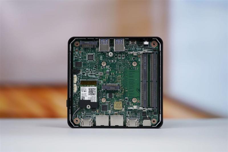 拆开主机可以看到有2条SO-DIMM插槽、1个M.2 2280、1个M.2 2242,总体来说,或者能力可以满足大部分办公用户的需求。
