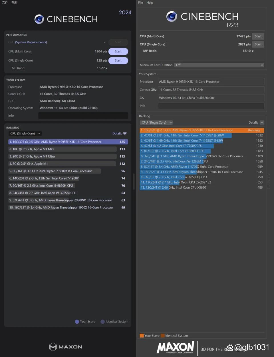 - 「CINEBENCH R23」:单核 2071 pts,多核 37475 pts