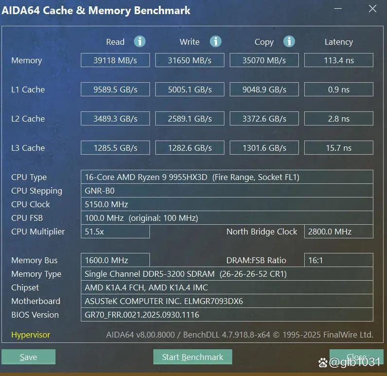 内存测试上,因为是单根32GB DDR5 笔记本内存所以测试成绩并不理想。还是建议各位「富哥」入手后第一时间升级32GB x2组成双通道。