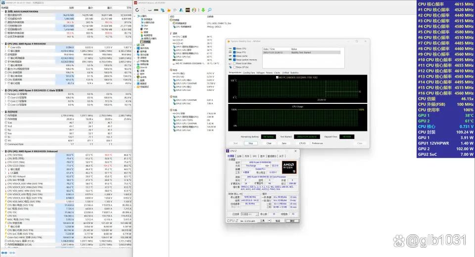 压力测试方面,AIDA 64 FPU 处理器单烤测试,10分钟后可以看到9955HX3D处理器功耗稳定在110W,CPU核心频率4.55GHz,处理器温度不过83.6℃(测试时室温25℃)。