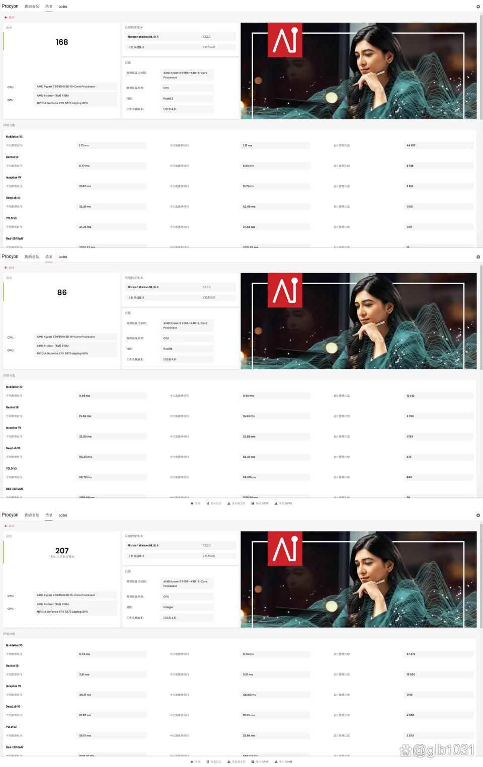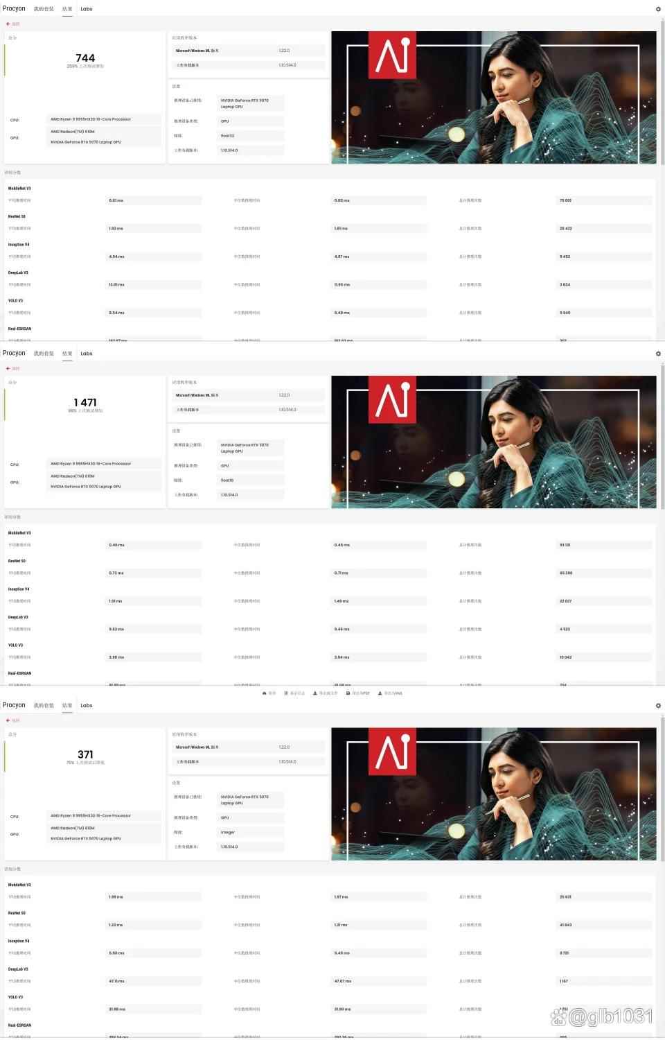 Microsoft Windows ML版本AI测试RTX 5070 Laptop显卡的测试如图,实际AI性能方面显卡的优势更明显。