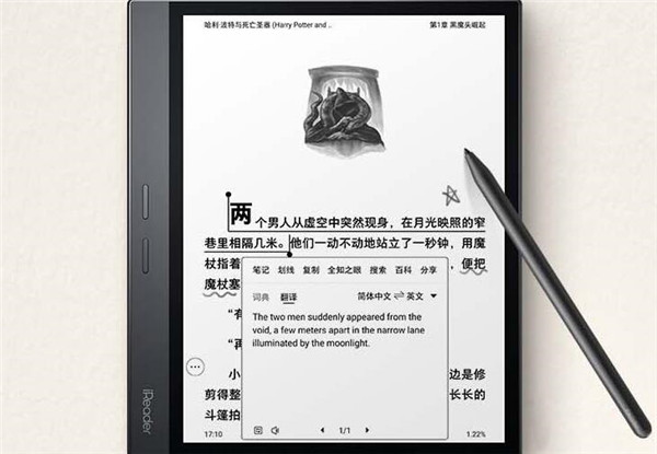 阅读书籍时可以进入学习模式,开启智能分屏,可以一边阅览书籍材料一边可以使用电磁笔做笔记,或者对书城书籍全文进行中英文翻译,告别厚重书本,让学习更轻松快捷。