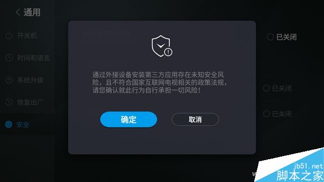 如果遇到了搜不到的视频内容怎么办?在这里小编偷偷告诉你一个方法,提前用电脑/手机下载其他视频APP的电视版或者Pad版,然后将它们拷贝到U盘里。将U盘插进屏霸后面的USB接口,然后在系统设置的安全选项卡中激活允许安装第三方应用的功能,我们就能直接在屏霸上安装任意视频APP啦。