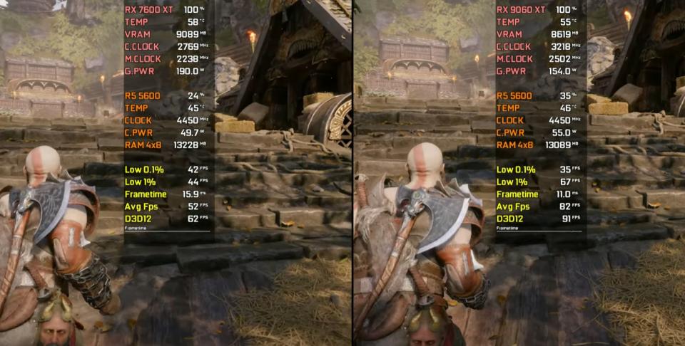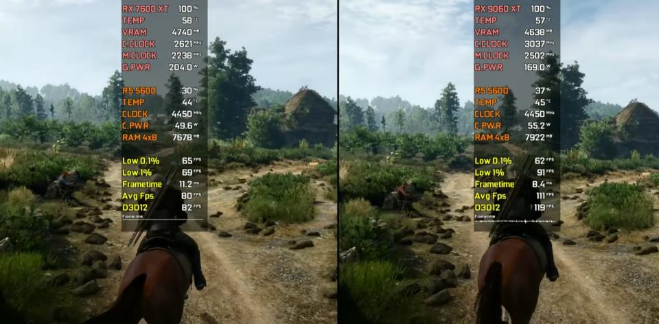 同样16GB的RX7600XT和RX9060XT显卡性能差距多大? 七款游戏性能对比测评