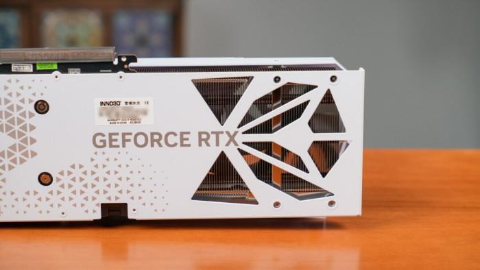 显卡背面同样采用高端系列一贯的全金属背板,为PCB元件与散热模组提供良好保护。延续“冰龙”系列标志性三角纹路、iChILL Logo与三角形背板镂空元素,为显卡尾部风扇让出风道形成吹透设计,进一步强化散热性能。