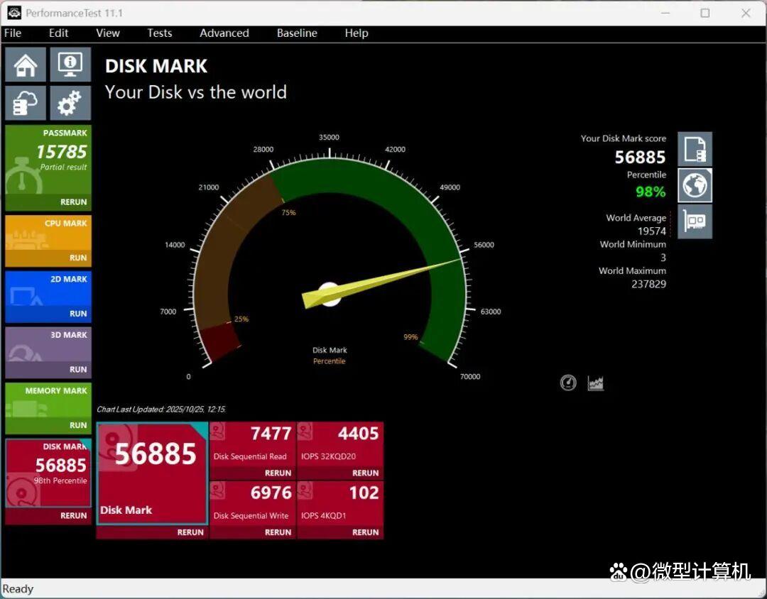 ▲致态TiPlus7100s 2TB的PerformanceTest 11.1磁盘测试成绩细节,读写性能均达到标称规格,相对三星产品优势明显。