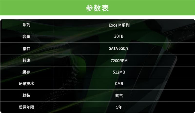 希捷银河Exos M 30TB硬盘详细参数如下: